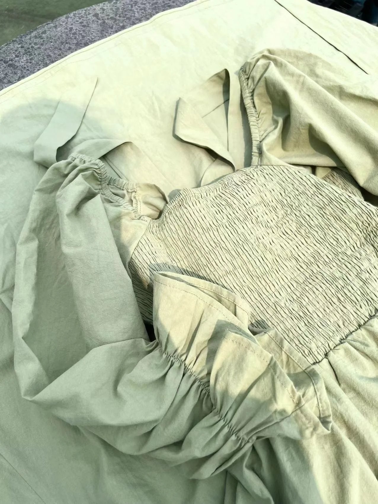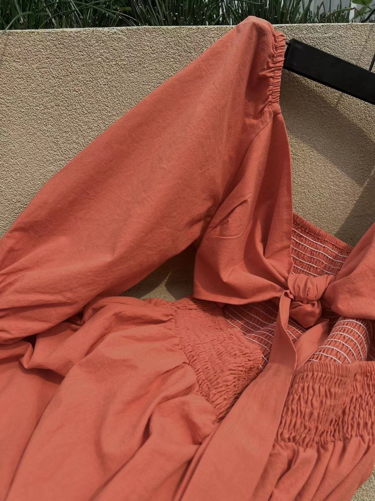 【Feature】Tie back,Wrap bodice,Elasticated shirring,Reversible design,Lantern sleeve,In seam Pockets,Lining in bust ,3/4 sleeve with soft elastic cuff and flounce,Removable neck strap