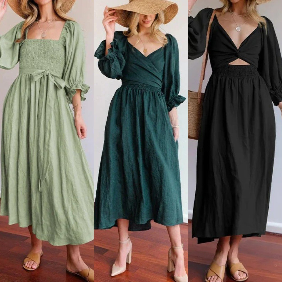50%off- French Ruffled Lantern Sleeves Multi-wear Dress