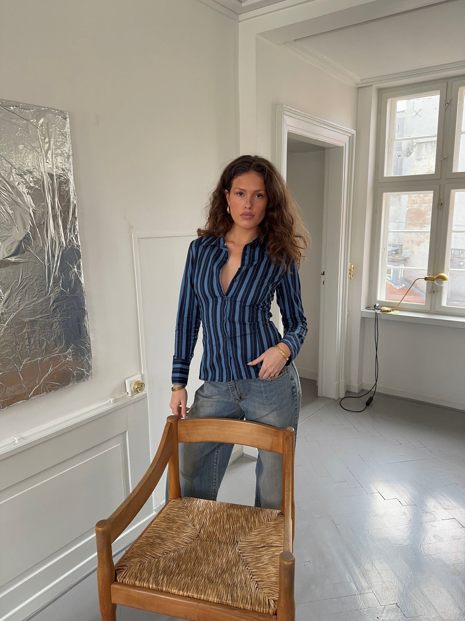 Alberte fitted striped shirt – Dark blue/black