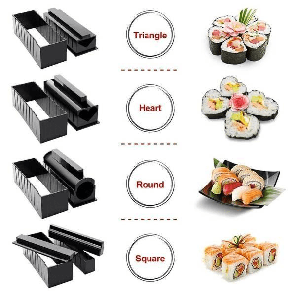 4 beautiful molds to make fun, uniquely-shaped sushi rolls! Whether you want to make a tasty traditional round sushi roll or you want to surprise your special someone with a heart-shaped sushi for valentine’s day, this kit has you covered. It comes with a 4 different mold shapes to make unique and delectable sushi. Surprise your family and friends with your uniquely-shaped sushi’s. Dream up your wildest combination of fresh, delicious and colorful ingredients and make your own special homemade sushi right at home!