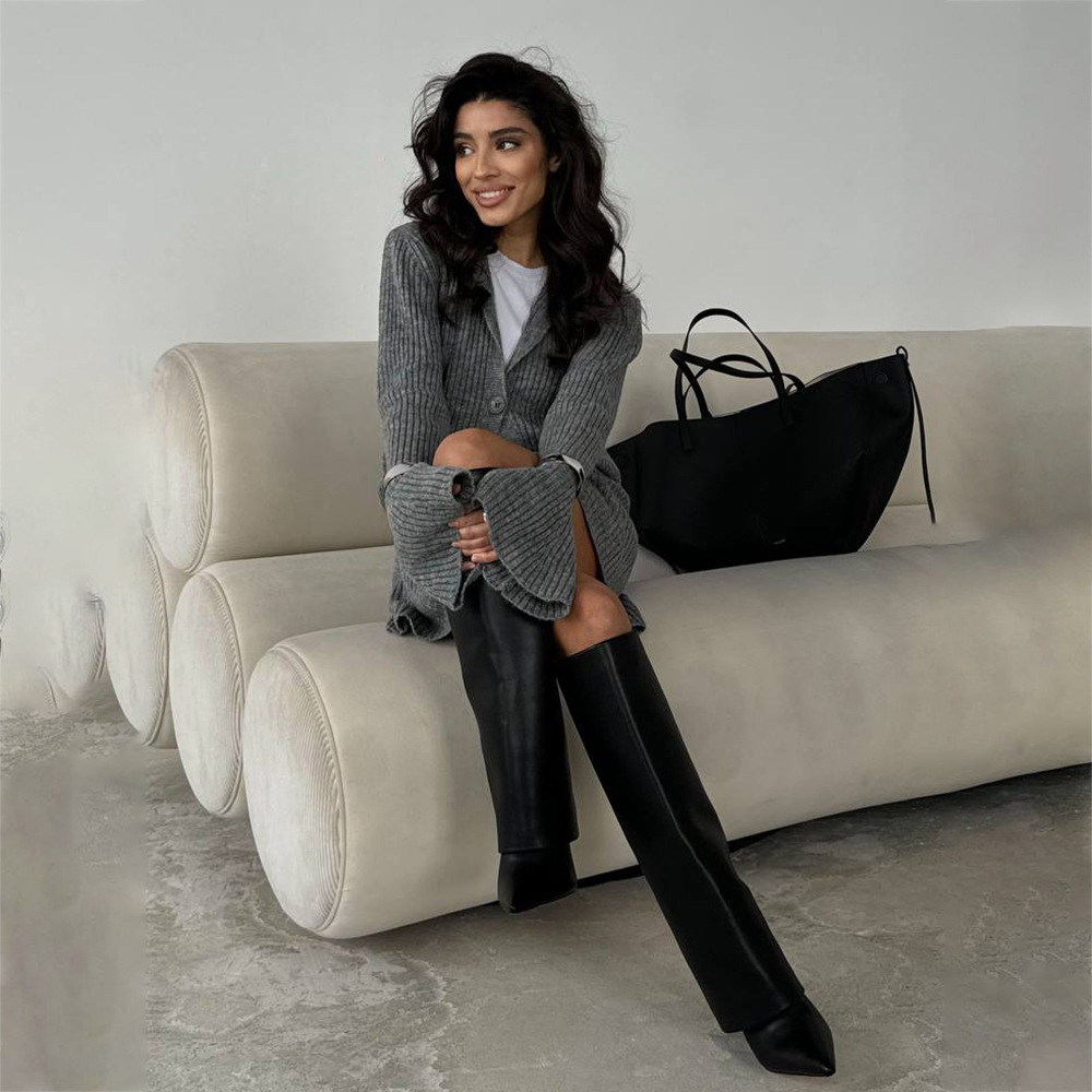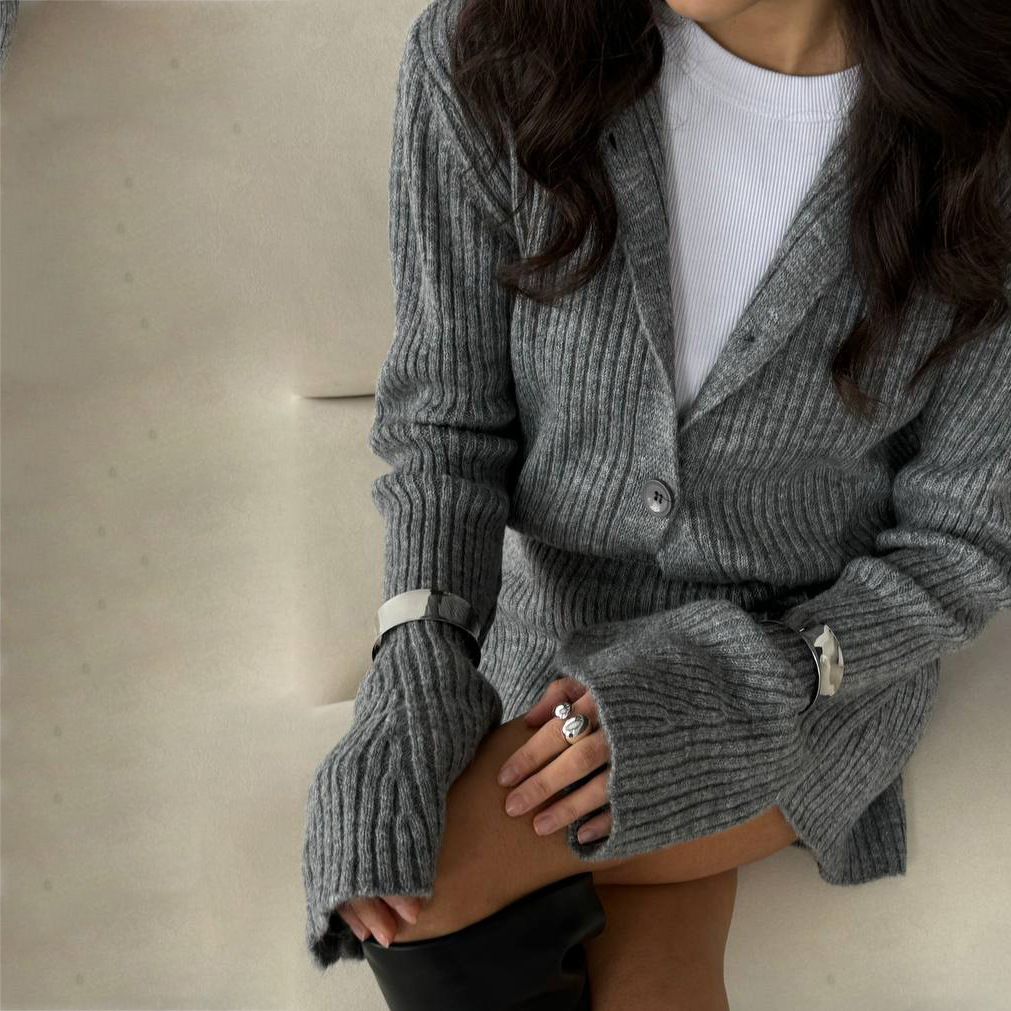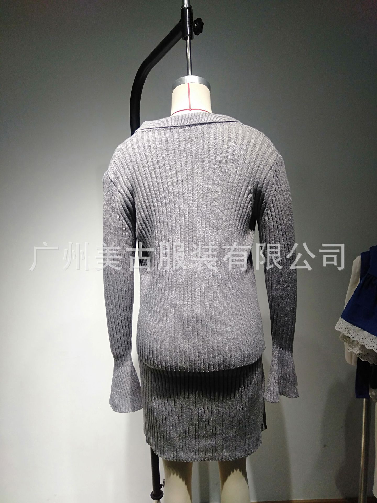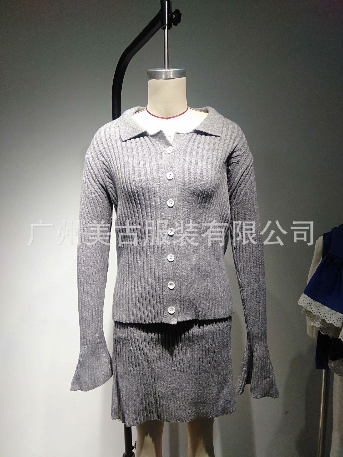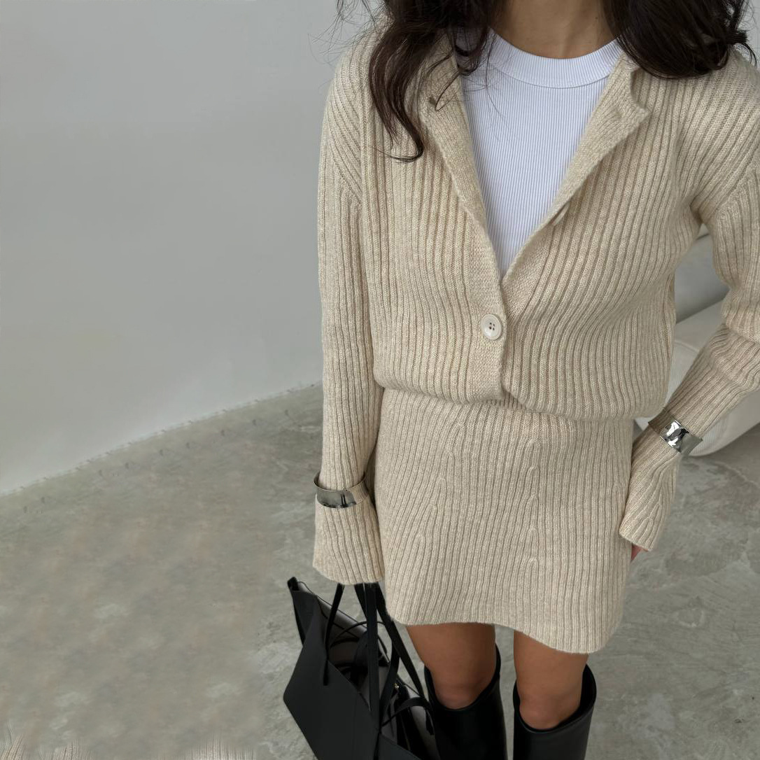 European And American Cross-Border Solid Color Sweater Suit Hot Girl Simple Cardigan Hip-Covering Short Skirt Suit Winter Two-Piece Set