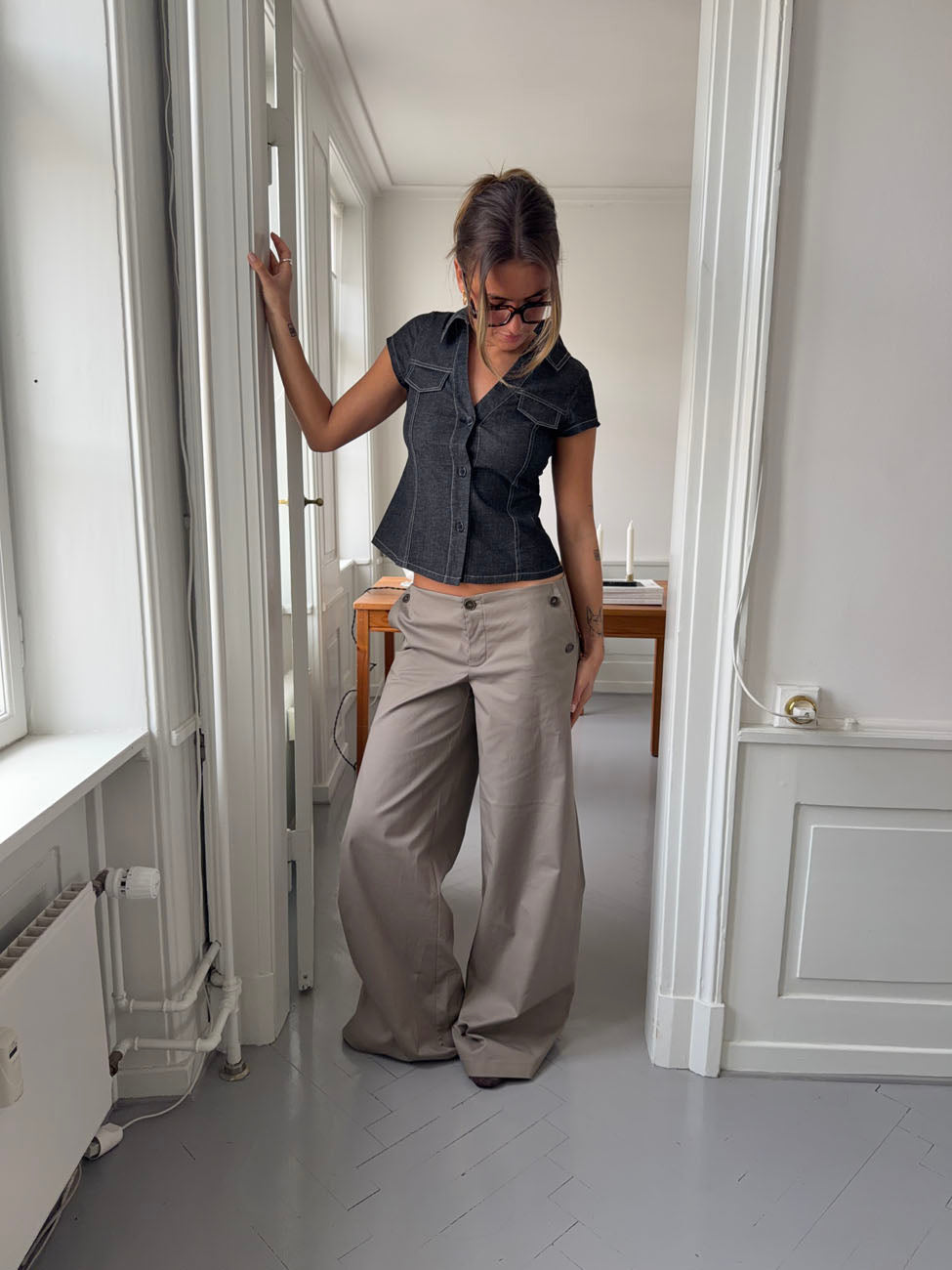 The sleek Maxim trousers in taupe are a must-have for any wardrobe. With their straight fit and decorative button details at the waist and hem, they strike the perfect balance between classic and modern style.